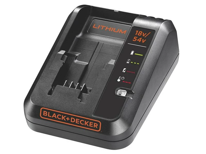 Nutzen Sie dieses Kombi-Schnellladegerät von Black+Decker zum zügigen Wiederaufladen der 54- und 18-Volt-Akkus. Dank seines Ladestroms von 2 A benötigen sind 18-Volt-Akkus mit 1,5 Ah in nur 45 Minuten und 54-Volt-Akkus mit 2,5 Ah in nur 3,75 Stunden mit neuer Energie versorgt. Zudem besitzt das Ladegerät eine Ladezustandsanzeige, die den Fortschritt des Ladevorgangs sowie Fehlfunktionen am Akku anzeigt.