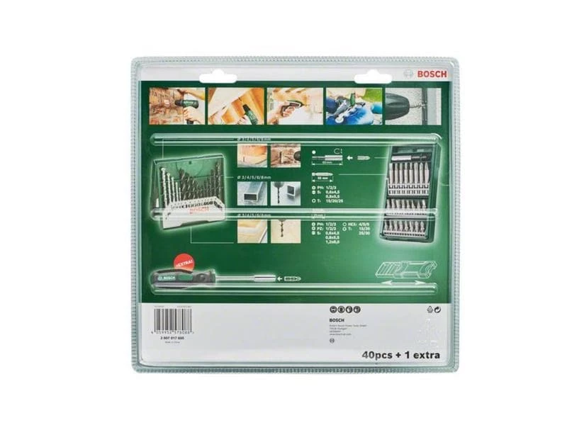 - 16 Schrauberbits, L= 25 mm: PH 1/2/3, PZ 1/2/3, S 4.5/5.5/8.0, HEX 4/5/6, T 15/20/25/30