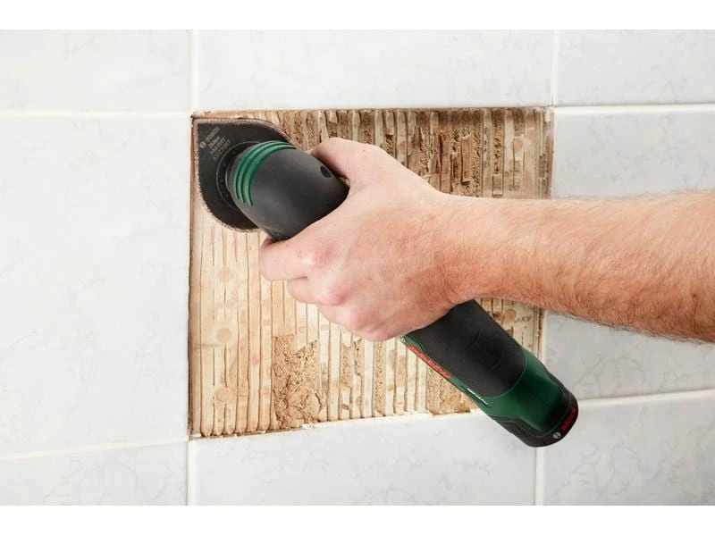 - Für das Entfernen von Mörtel und Fliesenklebstoff (z. B. beim Auswechseln beschädigter Fliesen)