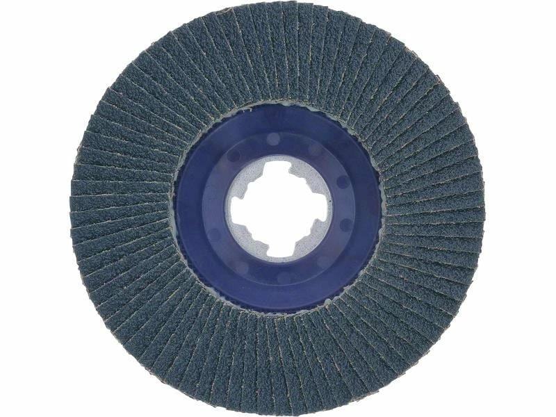 The X-LOCK Fächerschleifscheibe X571 Best for Metal bietet eine hervorragende Lebensdauer bei Metallarbeiten. Ihr Schleifflächenbesatz aus hochwertigem zirkoniumoxidverstärkten Halbedelkorundkorn ist bei extensiven Arbeiten an Metall robust und verschleissfest. Die Scheibenträgerplatte ist sowohl gewinkelt als auch gerade erhältlich und besteht aus Kunststoffmaterial. Verwenden Sie diese Scheibe zum Schruppen von Schweissnähten und Schleifen von Metalloberflächen. Dank schlüssellosem X-LOCK-System lassen sich die Fächerschleifscheiben schnell und bequem wechseln.