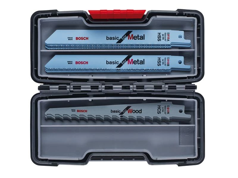 Sie sind kompatibel mit Säbelsägen mit einem Universalschaftsystem. Das 15-teilige Wood and Metal Säbelsägeblatt-Set, Tough Box, ermöglicht Schnitte in Holz und Metall. Das Set enthält Blätter zum Schneiden von Stahlrohren, Profilen und Holz.