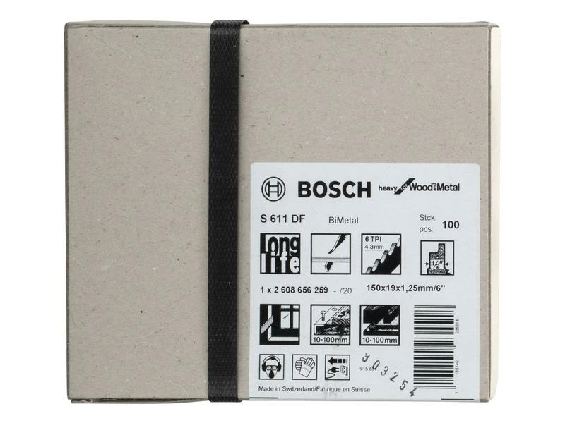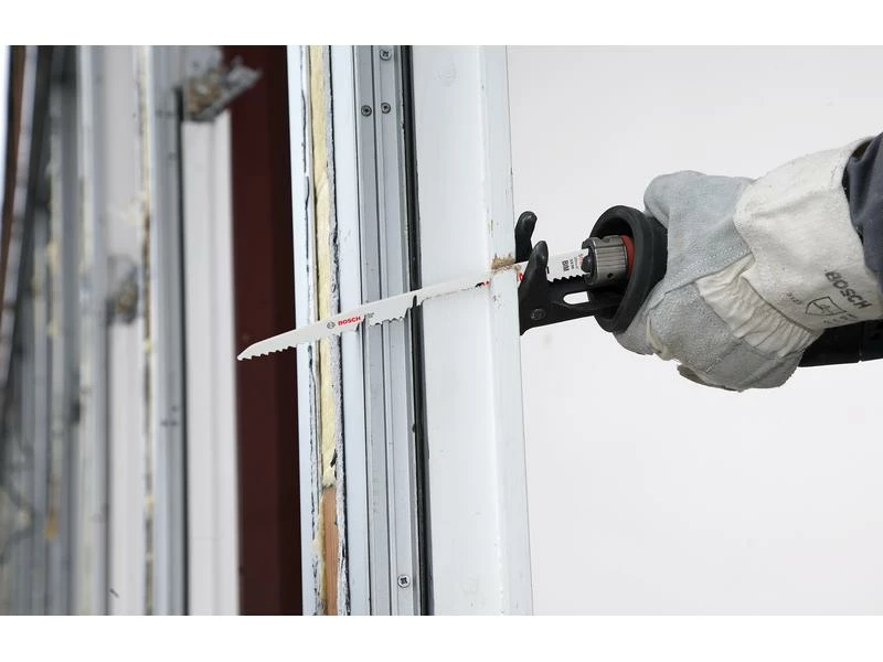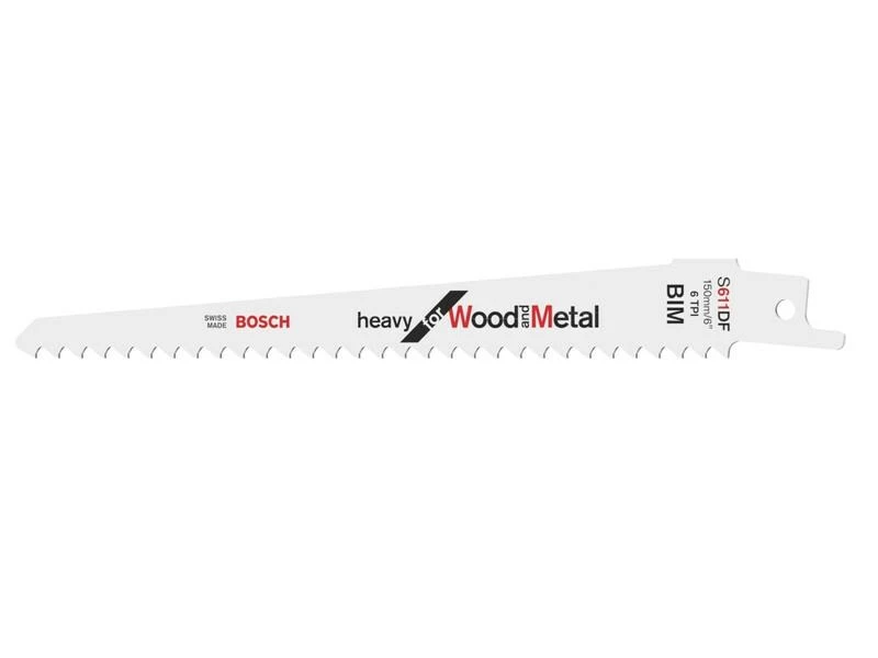 Geeignet für Säbelsägen mit 0.5-Zoll-Universalschaftsystemen. Das S 611 DF Heavy for Wood and Metal Säbelsägeblatt eignet sich für schnelle Tauchschnitte in Holz und Metall. Die grosse Zahnteilung (4.3 mm) und geschränkten Zähne ermöglichen schnelle Ergebnisse bei allen gängigen Fensterabmessungen. Der vollständig verjüngte Körper des Säbelsägeblatts ermöglicht einen einfachen Zugang zu schwer erreichbaren Stellen, während die geschliffene Spitze Tauchschnitte ermöglicht. Zudem kombiniert die Bimetallbasis ein Blatt aus HCS-Stahl (Stahl mit hohem Kohlenstoffgehalt) mit einer HSS-Zahnleiste (Schnellarbeitsstahl), weswegen es ideal für das Zerlegen von Fenstern ist. Es verfügt über eine Standardlänge von 150 mm mit einer Schnittleistung von bis zu 100 mm.