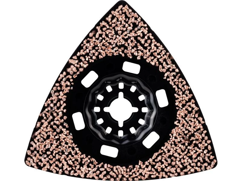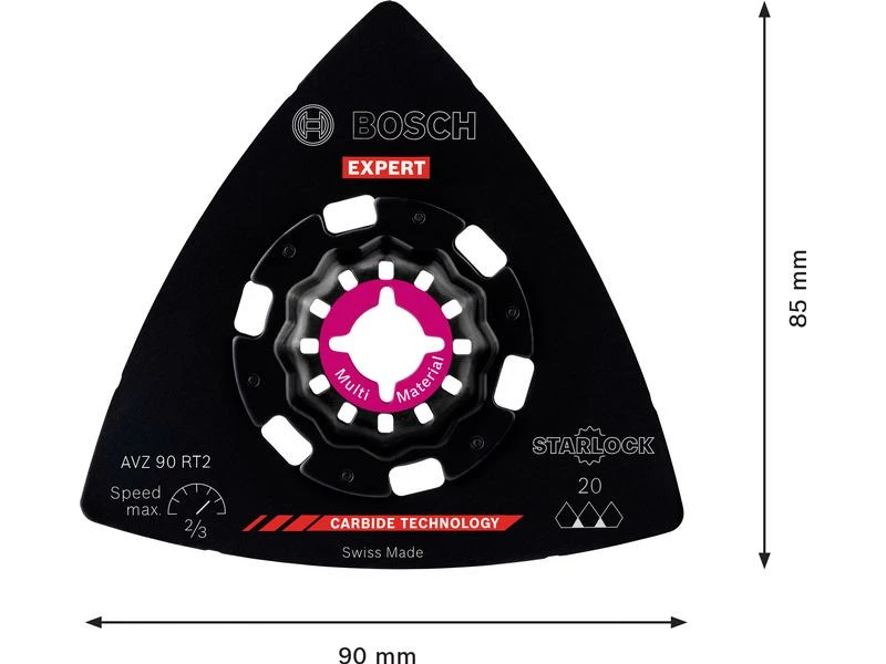 Hält bis zu 100-mal länger als Standard-Schleifpapier – Kleine, aber harte Schleifarbeiten zum Entfernen von altem Material und zum Vorbereiten von Oberflächen sind mit herkömmlichen Schleifmaschinen oder von Hand fast unmöglich zu erledigen. Selbst wenn du die Oberfläche erreichen kannst, reißt das Schleifpapier ein. Mit der EXPERT Sanding Plate kannst du jedoch mit deinem oszillierenden Multifunktionswerkzeug Ecken erreichen und schwierige Materialien schleifen. Mit der Bosch Carbide Technology werden Körnungen des härtesten Metalls stabil an der Oberfläche befestigt. Dieses scharfe Korn bleibt über seine lange Lebensdauer hochwirksam, da es mit Lösungsmittel gereinigt werden kann. Die EXPERT Sanding Plate wurde für mehrere Materialien und Anwendungszwecke entwickelt. Die groben, offenen Körner des RT2 (Körnung 20) eignen sich am besten zum Entfernen von Mörtel hinter Fliesen, von Teppichkleber oder für die Grobbearbeitung von Holz. Der RT4 (Körnung 40) eignet sich am besten zum Entfernen von dickem Lack, er kann aber auch mit Mörtel und Kleber umgehen. Der RT6 (Körnung 60) ist der Lackspezialist, während der RT10 (Körnung 100) ideal zum Schleifen und Vorbereiten sauberer Holzoberflächen geeignet ist. Starlock Aufnahme für maximale Kraftübertragung und bequemen Klingenwechsel innerhalb von 3 Sekunden.