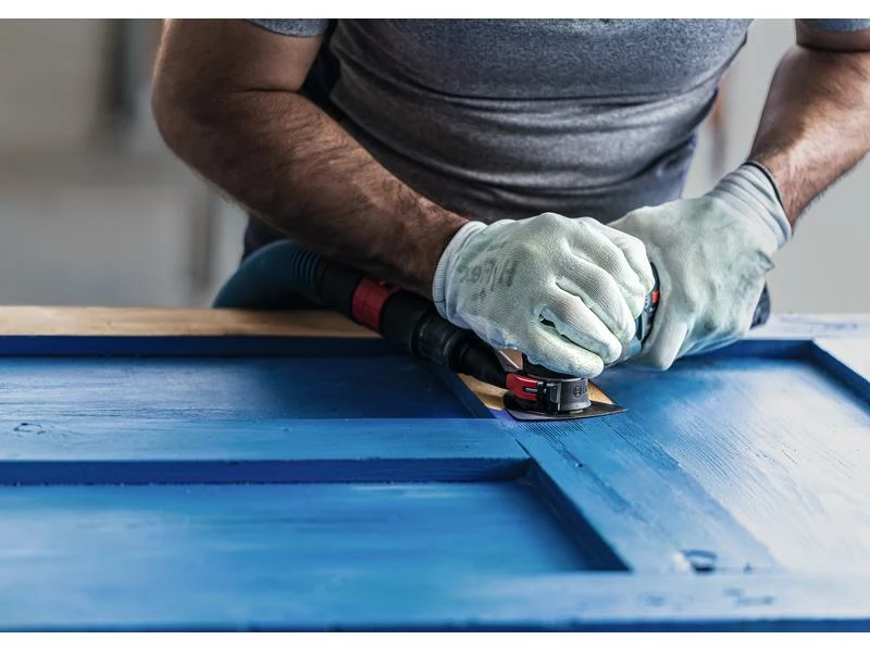 Hält bis zu 100-mal länger als Standard-Schleifpapier – Kleine, aber harte Schleifarbeiten zum Entfernen von altem Material und zum Vorbereiten von Oberflächen sind mit herkömmlichen Schleifmaschinen oder von Hand fast unmöglich zu erledigen. Selbst wenn du die Oberfläche erreichen kannst, reißt das Schleifpapier ein. Mit der EXPERT Sanding Plate kannst du jedoch mit deinem oszillierenden Multifunktionswerkzeug Ecken erreichen und schwierige Materialien schleifen. Mit der Bosch Carbide Technology werden Körnungen des härtesten Metalls stabil an der Oberfläche befestigt. Dieses scharfe Korn bleibt über seine lange Lebensdauer hochwirksam, da es mit Lösungsmittel gereinigt werden kann. Die EXPERT Sanding Plate wurde für mehrere Materialien und Anwendungszwecke entwickelt. Die groben, offenen Körner des RT2 (Körnung 20) eignen sich am besten zum Entfernen von Mörtel hinter Fliesen, von Teppichkleber oder für die Grobbearbeitung von Holz. Der RT4 (Körnung 40) eignet sich am besten zum Entfernen von dickem Lack, er kann aber auch mit Mörtel und Kleber umgehen. Der RT6 (Körnung 60) ist der Lackspezialist, während der RT10 (Körnung 100) ideal zum Schleifen und Vorbereiten sauberer Holzoberflächen geeignet ist. Starlock Aufnahme für maximale Kraftübertragung und bequemen Klingenwechsel innerhalb von 3 Sekunden.