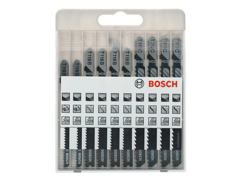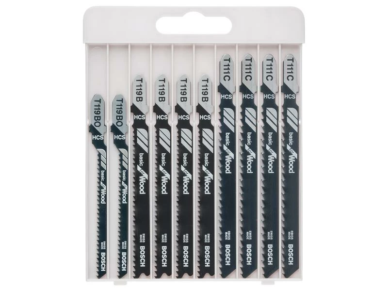Sie sind kompatibel mit Stichsägen mit einem Einnockenschaftsystem. Das 10-tlg. Basic for Wood Stichsägeblatt-Set, Kassette, schneidet in Holz. Es enthält Blätter für gerade und Kurvenschnitte in Weichholz.