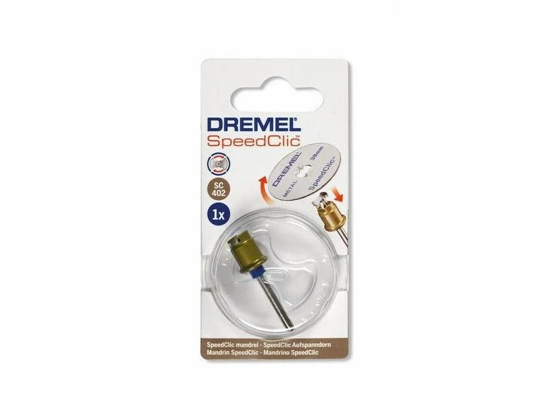 Der EZ SpeedClic Aufspanndorn SC402 ermöglicht die schnelle und einfache Montage von Zubehör an das Dremel-Werkzeug. Der Aufspanndorn hat einen Schaftdurchmesser von 3,2 mm und dient zum Beispiel zur Befestigung von Trennscheiben oder Schleifbürsten aus dem EZ SpeedClic Schnellwechselsystem. Die Höchstdrehzahl des Aufspanndorns liegt bei 35.000 Umdrehungen pro Minute.