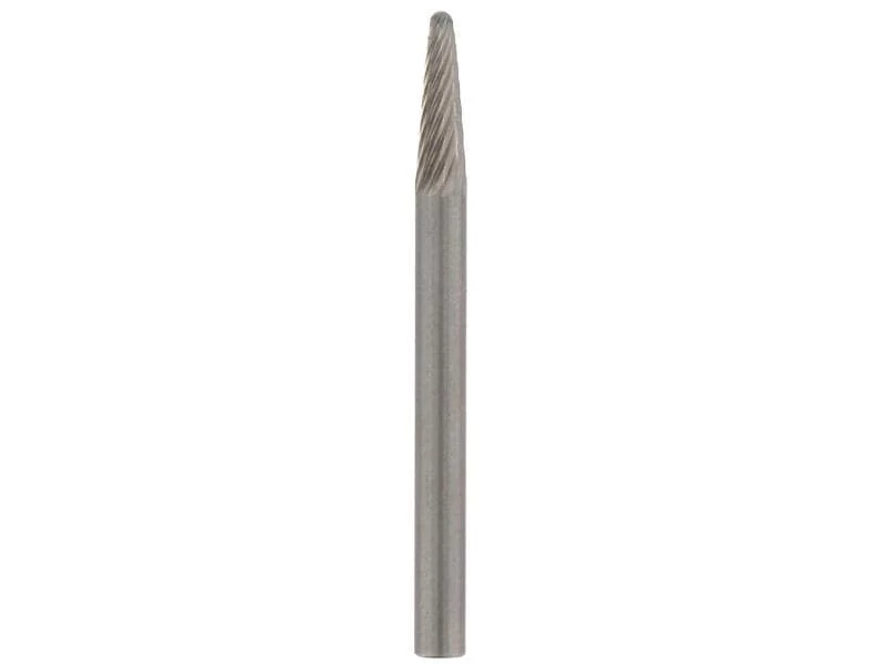 Der Dremel Wolframkarbid-Fräser 9910 hat einen Schaftdurchmesser von 3,2 mm und verfügt über eine Speerspitze. Mit einer maximalen Drehzahl von 30.000 Umdrehungen pro Minute können Materialien wie beispielweise Hartholz, gehärteter Stahl, Gusseisen, gebrannter Ton sowie Kunststoff und Leder mit Leichtigkeit bearbeitet werden. Einsatzgebiete sind das Glätten, Formen und die Materialabnahme. Die Herstellung aus festem Wolframkarbid verspricht eine lange Lebensdauer des Fräsers.