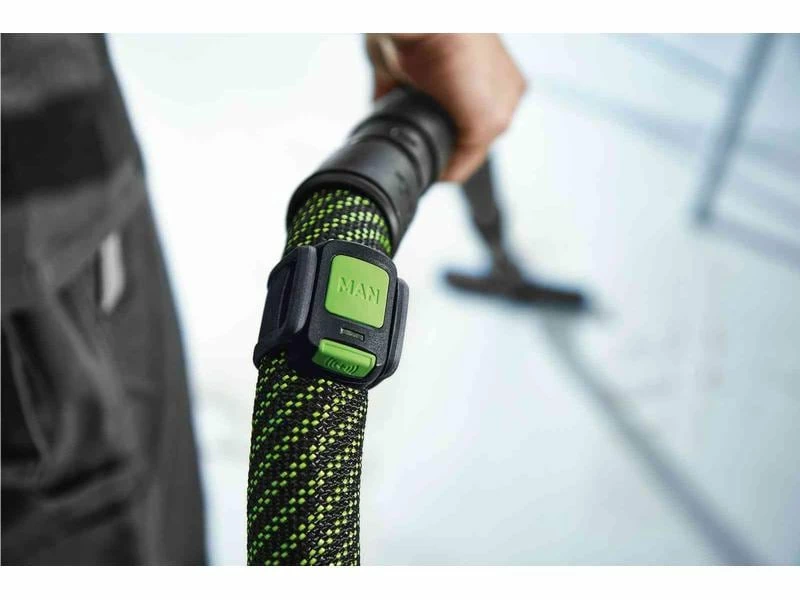 Die Kombination von Bluetooth Modul am CLEANTEC Absaugmobil und Fernbedienung am Absaugschlauch spart den Weg zum Sauger: Absaugung einfach direkt am Schlauch mit der Fernbedienung starten. Ideal für kurze Reinigungsarbeiten zwischendurch – einfach umschalten in den Reinigungsmodus, auch wenn das Absaugmobil sich im AUTO-Modus befindet. Das Bluetooth Modul am Absaugmobil kommuniziert aber nicht nur mit der neuen Funkfernbedienung – sondern auch mit den Festool Bluetooth Akkupacks. Diese sorgen dafür, dass auch ein Akkuwerkzeug beim Einschalten das Absaugmobil automatisch startet. So profitieren Sie jetzt auch beim Arbeiten mit Festool Akkuprodukten vom gesamten Festool Staubfrei-System.