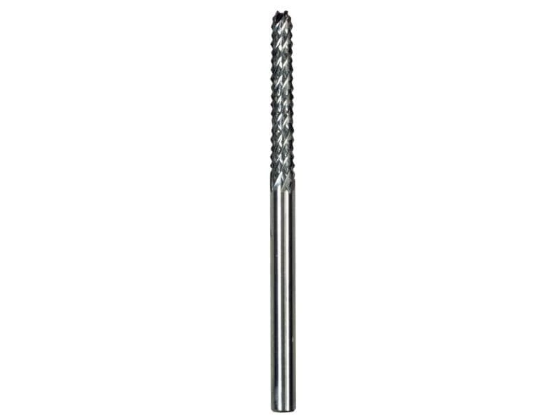 Werden die Werkstücke fest eingespannt, dient dieser Raspelfräser zum vibrationsfreien Schneiden und Fräsen verschiedener Materialien. Für das Bearbeiten von Fliesen, Holz, Kunststoff und Steingut ist er optimal geeignet. Das Material lässt sich ohne grossen Kraftaufwand abtragen. Der Fräskopf hat bei einer Länge von 22mm einen Durchmesser von 3,2 mm.