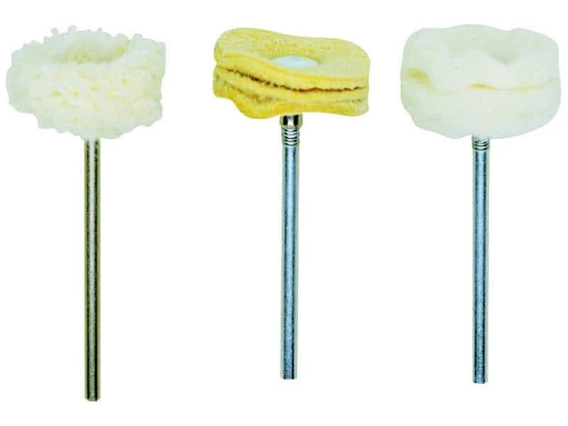 Die Filzpolierscheibe eignet sich, wird sie zusammen mit Polierpaste verwendet, um Edelmetalle, NE-Metalle oder andere Materialien wie Porzellan oder Messing auf Hochglanz zu polieren. Ferner dient sie auch dem Aufbereiten von lackierten Hölzern. Der Schaft hat einen Durchmesser von 2,35 Millimetern.
