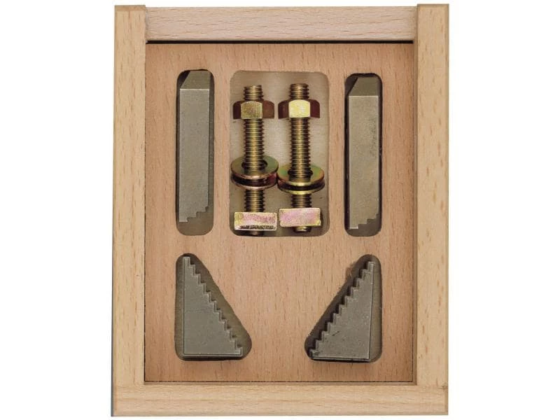 Die aus Stahl gefertigten Stufenspannpratzen sind aufgrund ihrer geringen Grösse besonders zum zuverlässigen Befestigen kleinerer Werkstücke von bis zu 18,0 mm Durchmesser geeignet. Die Lieferung erfolgt zusammen mit zwei Stufenblöcken, Gewindebolzen, Muttern und T-Nutensteinen.